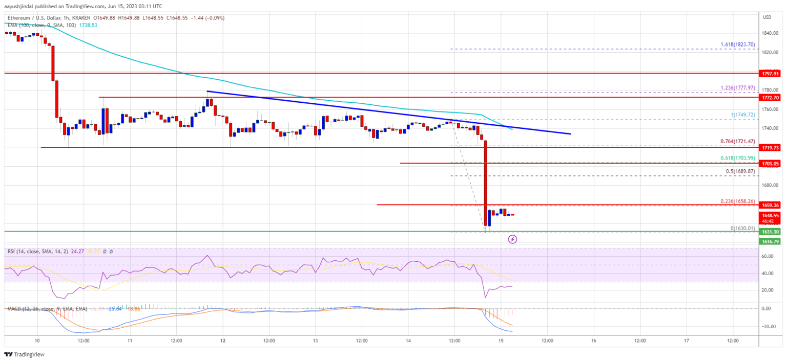 If Ethereum fails to clear the $1,700 resistance, it could fall further. Initial support on the downside is near the $1,630 level and the recent low.