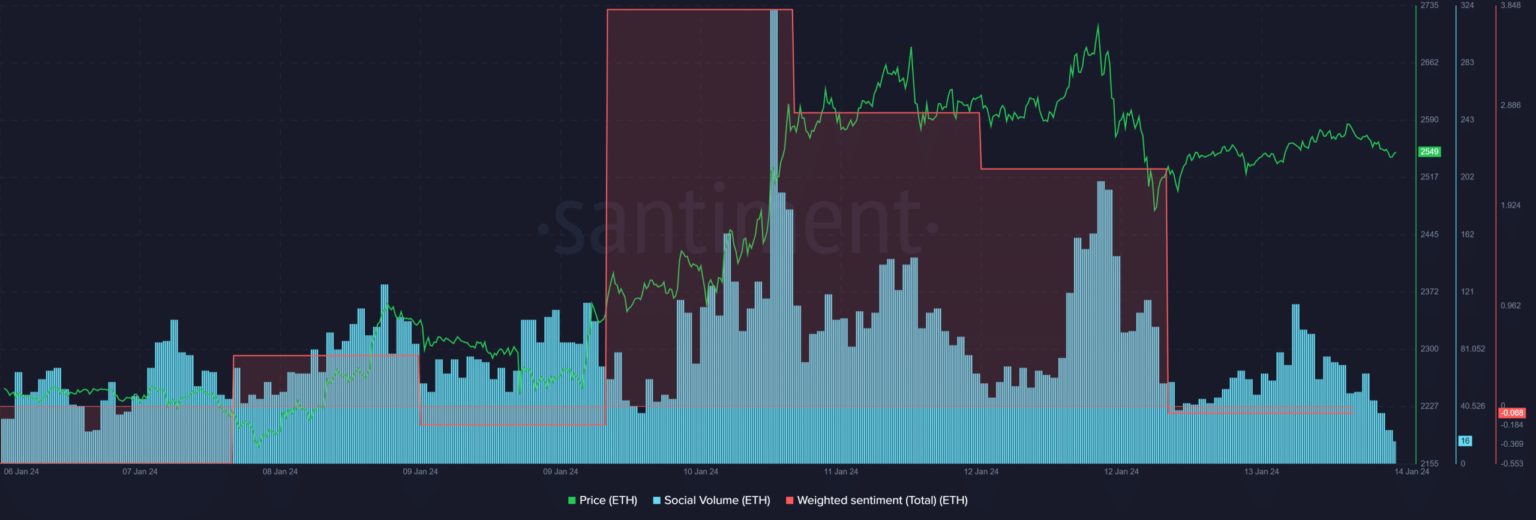 Interestingly, despite the rise in bullish sentiment, ETH‘s social volume registered a decline in the recent past.
