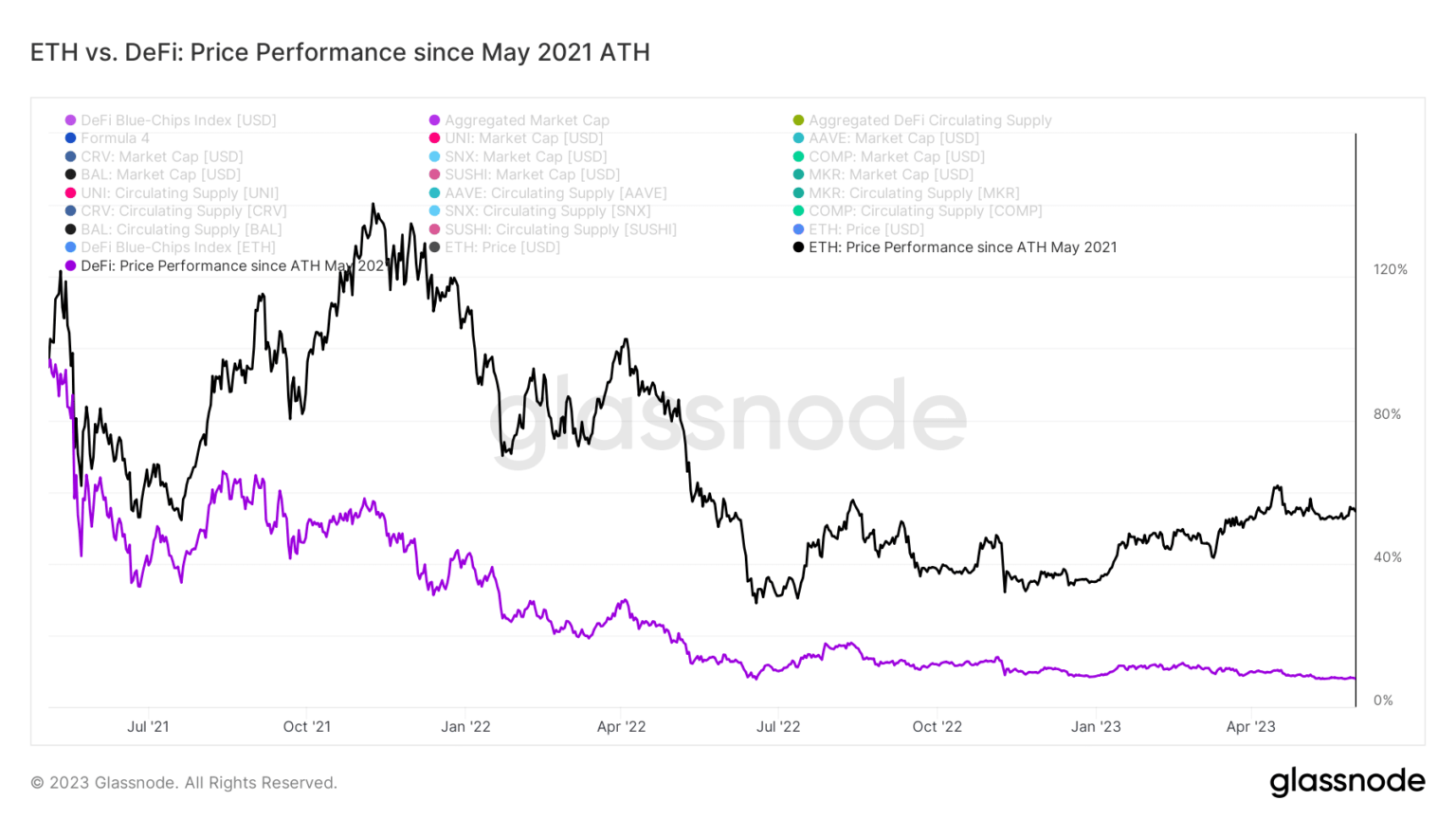 Furthermore, it was worth noting that the DeFi index failed to surpass its previous all-time record in May. It remained -42% below it, despite ETH prices reaching new all-time highs in November 2021.