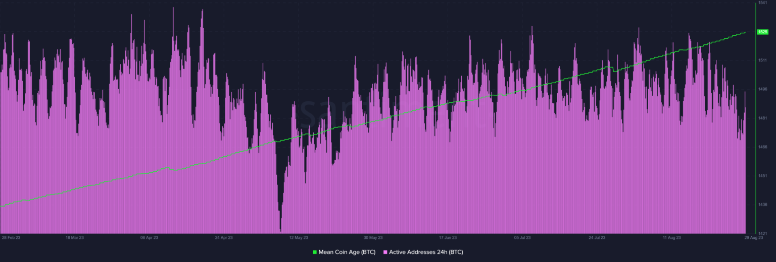 Speaking of accumulation, Bitcoin’s average coin age has been steadily rising and, at the time of publication, was at its highest point in six months. This confirmed that there was still prolonged hodling.