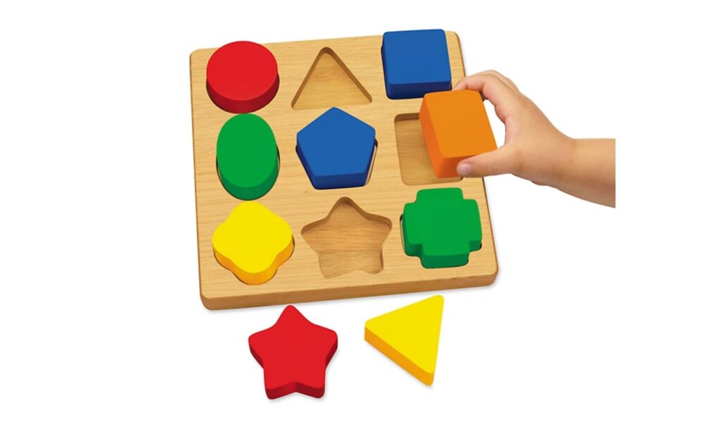 Maeve likes to play with this (☝️) block finding game – take the square peg and place it in the square cutout…
