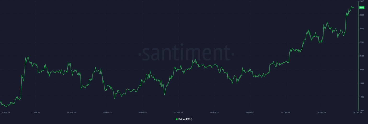 Despite ETH being the main transfer method for the potential attacker, the price of ETH remained unaffected. At the time of writing, ETH was trading at $2,373.91 and grew 5.05% in the past 24 hours.