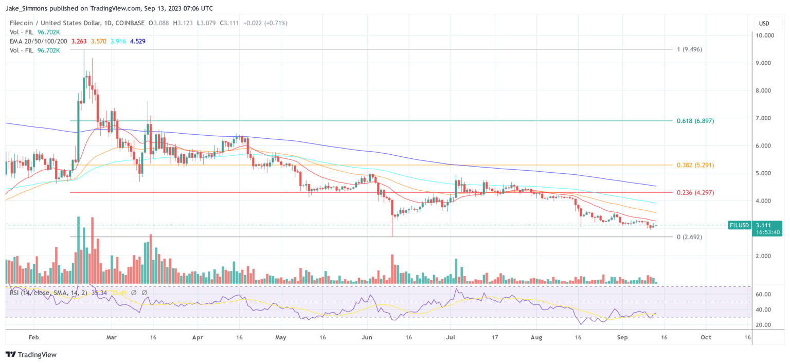 At the time of writing, Filecoin (FIL) was trading at $3.11