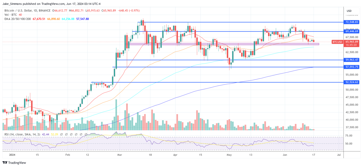 This alignment between the Fed’s projections and market expectations likely gives the central bank more flexibility in future interest rate communications. For Bitcoin, maintaining the $66,000 support level is crucial.