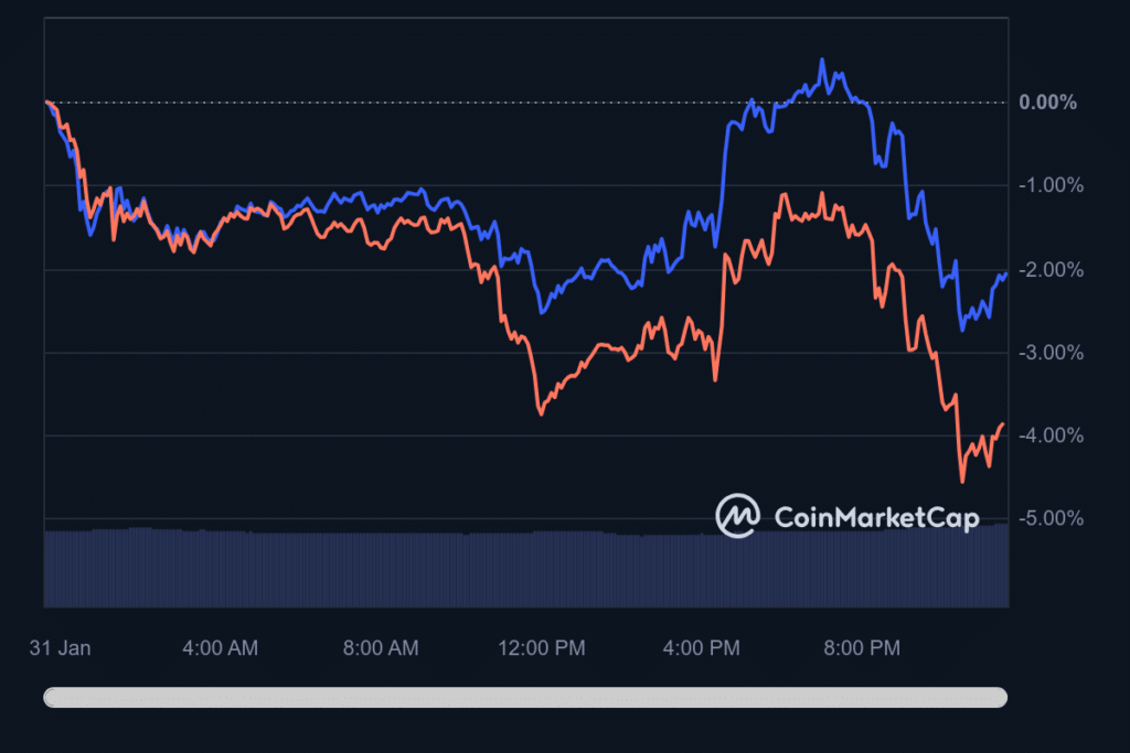 Major cryptocurrencies, including Bitcoin [BTC]and Ethereum [ETH]witnessed a decline after Federal Reserve Chairman Jerome Powell said he does not expect any rate cuts at the next FOMC meeting, scheduled for March.