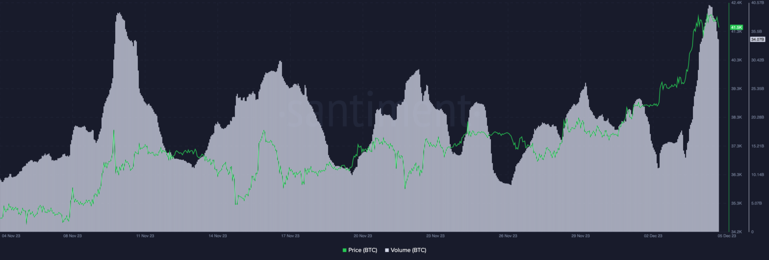 The volume on which it was traded had also increased dramatically during this period. Only time will tell if the bullish hypothesis for BTC becomes a reality in the future.