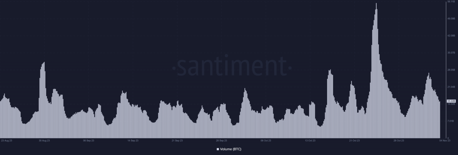 At the time of writing, the volume chart on Santiment indicated a figure of approximately $15.2 billion.