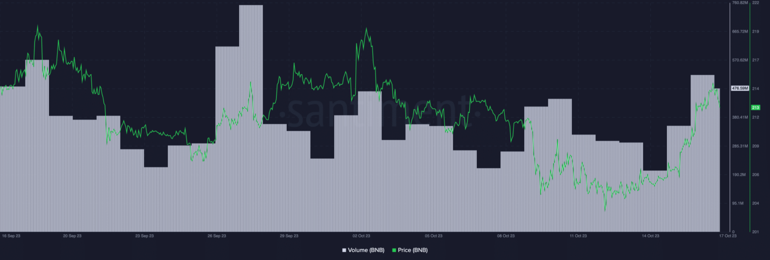 At the time of writing, BNB was trading at $213.01 per coin, having risen 3% over the past two days.