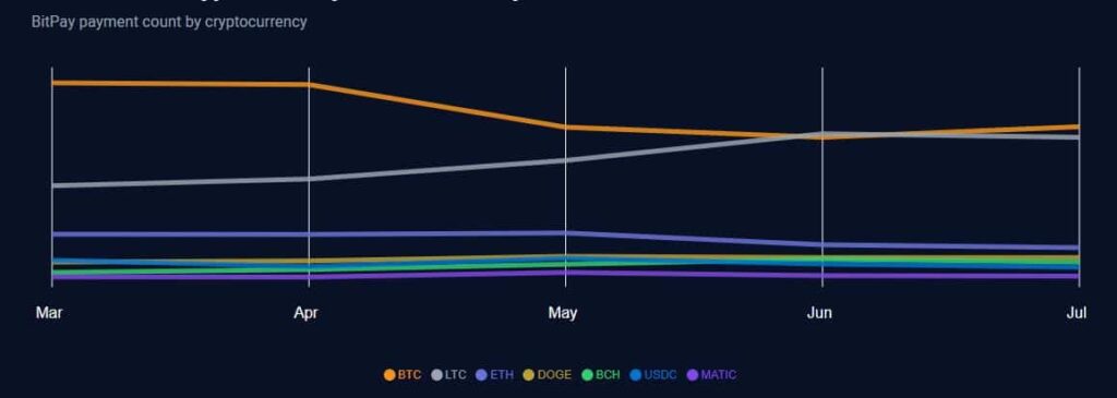 - LTC’s share of global payments rose from 23% in March to just over 34% at the end of July.