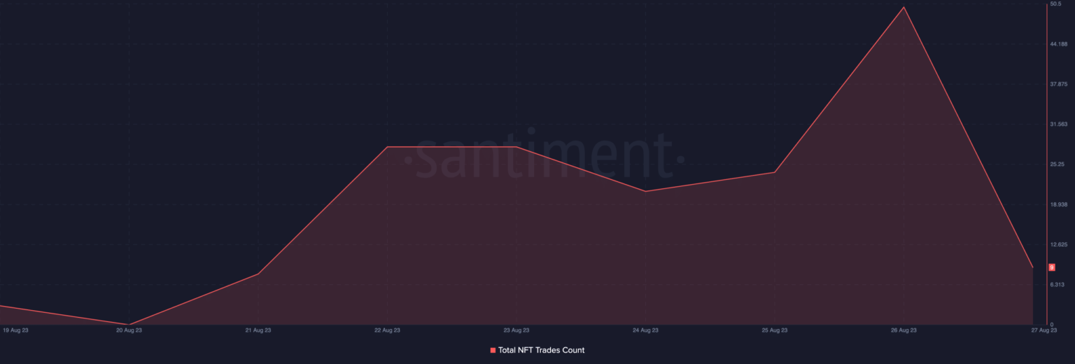 However, it is important to note that while the rise of Unibot is promising, it may not be a panacea for Ethereum’s challenges. Despite Unibot’s growth, NFT sales on the Ethereum platform continue to fall, as shown by Santiment’s data. This suggests that while certain areas show promise, the broader landscape of Ethereum remains complex.