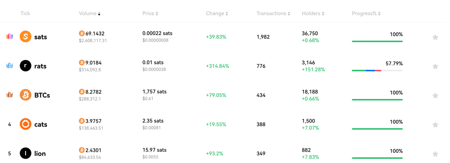 In the past week, the collection of sats increased by 124%, the collection of “BTCs” increased by 30%, and “honk” grew by 300% and “ordi” by 13%. Among them, ‘sats’ occupied the first place with a market capitalization of about $166 million, surpassing ‘ordi’ by about $130 million.