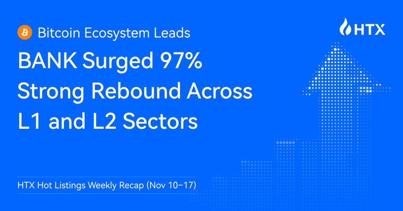HTX today announces its Hot Listings Weekly Recap for November 10-17, highlighting a week of strong market momentum and sector-specific growth. Leading the rise, BANK – the modular Bitcoin L2 protocol – rose 97% in just seven days, reflecting growing investor confidence in the Bitcoin ecosystem. Additionally, high-quality assets across L1 chains, Solana DEXs, and DeFi protocols showed notable gains, signaling a dynamic period of multi-sector rotation and renewed opportunities for traders.