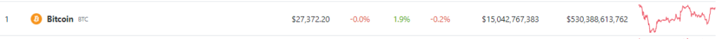 At the moment of writing CoinGecko shows that the price of Bitcoin is at $27,372, reflecting a modest 1.9% increase in the past 24 hours. However, it is worth noting that the cryptocurrency has also experienced a slight 0.2% decline in the past seven days.