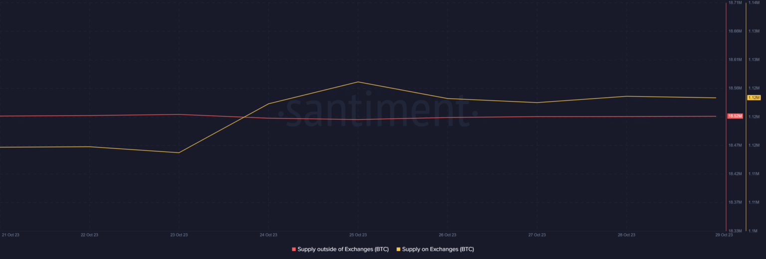 Although the whales’ confidence in BTC was high, the frontier market seemed to have a different opinion. This was evident from the fact that BTCThe supply on the exchanges exceeded the supply outside the exchanges.