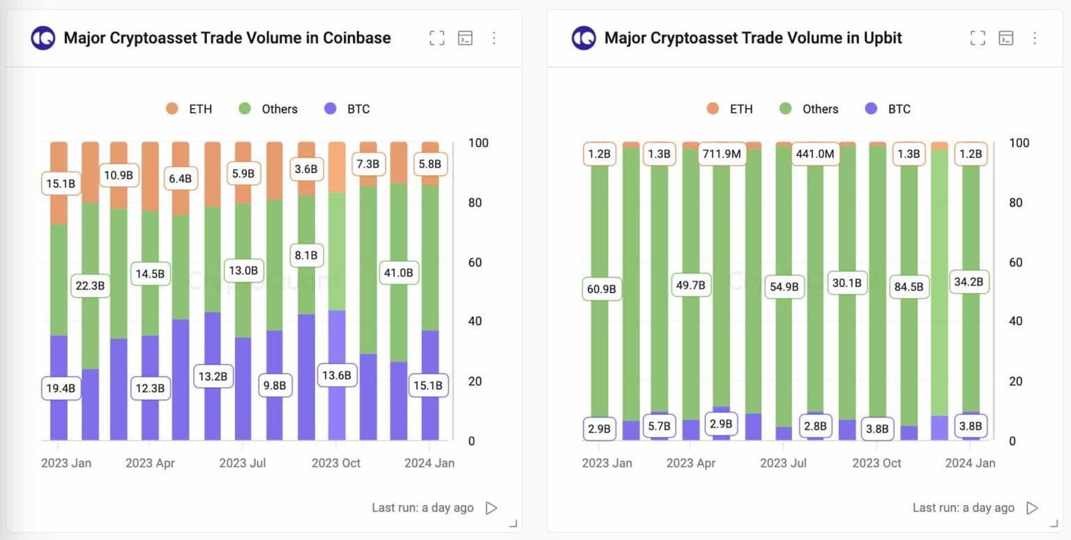 - Korean exchange Upbit had an altcoin dominance of 87% in its total trading volume in January.