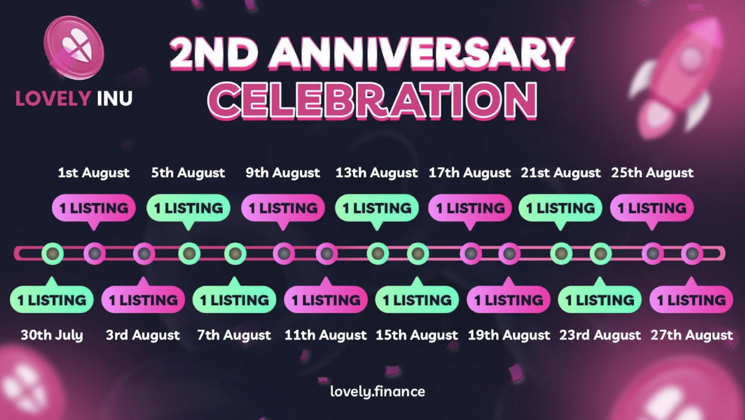 Celebrate with other LOVELY enthusiasts and engage with a huge and vibrant community as this 2nd anniversary event is a milestone to celebrate the progress and achievements of the Lovely Inu project.