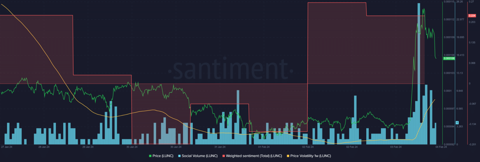 - The bullish sentiment surrounding LUNC became dominant over the past 24 hours.