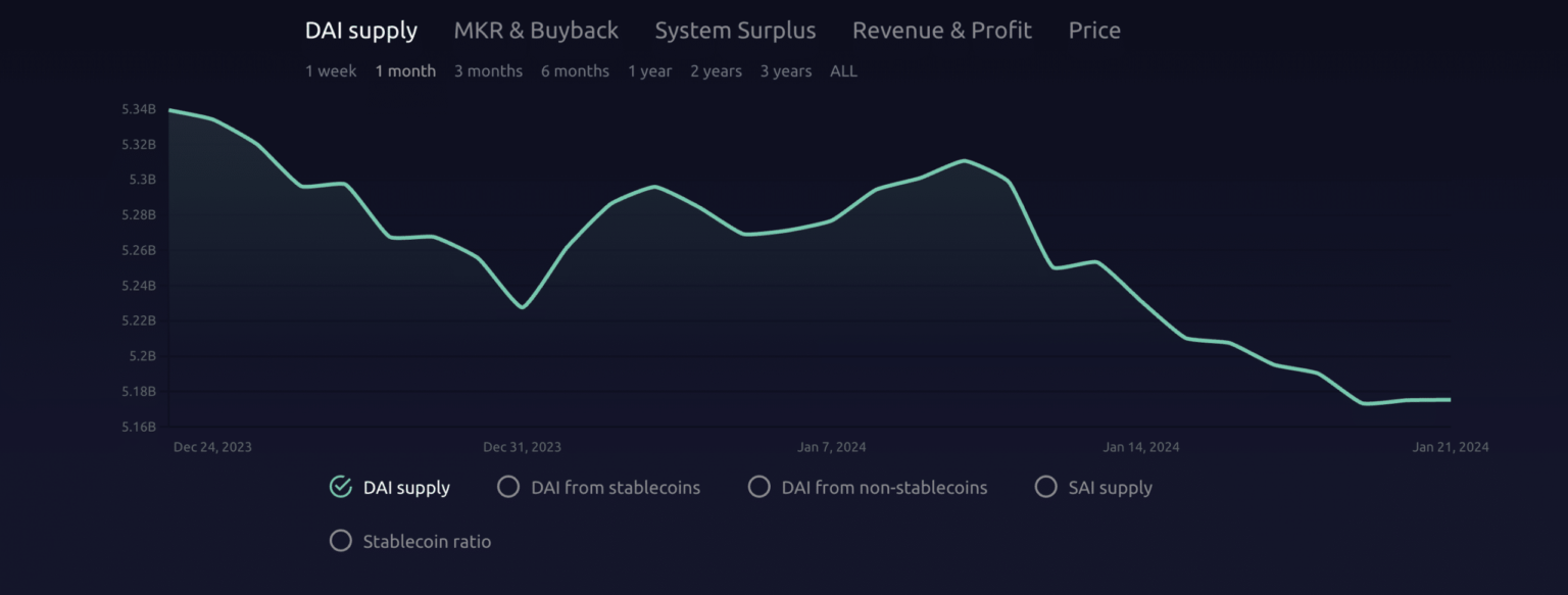 However, due to the decline in prices of some of DAI’s underlying assets, supply has steadily declined since January 11.
