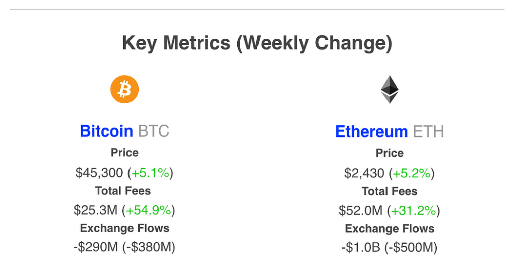 Outumuro notes that more than $1 billion worth of Ethereum net flows left centralized exchanges this week. ETH’s network fees, which indicate willingness to spend money and demand to use the asset, increased by more than 30% over the same period.