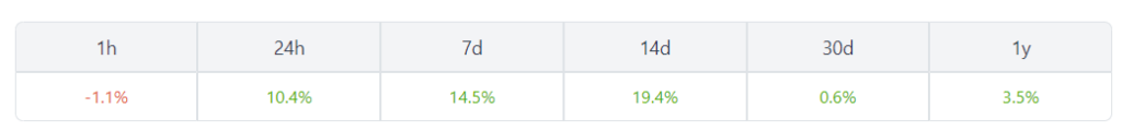 The 59th largest crypto, with a market cap of $760.2 million, is also one of the best performing coins of the past week, gaining more than 14%.
