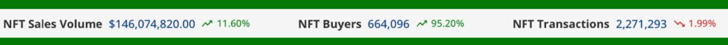 Despite a slight 1.99% drop in the number of NFT transactions, which reached 2,271,293 last week, there has been a more than 95% increase in the number of NFT buyers. Statistics show that about 664,096 buyers have been registered in the past seven days.