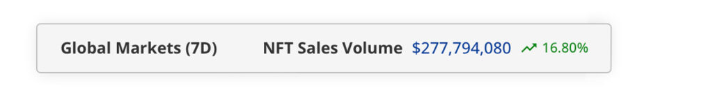 This week saw another increase in NFT sales, building on the 3.74% increase seen last week. At last count, NFT transactions reached $277.79 million across 21 different blockchain platforms, marking a 16.8% increase. Conversely, the number of NFT buyers fell by 80.74% and the number of sellers fell by 78.71%. Ethereum claimed the lead in these seven days, posting revenues of $148.49 million, while Bitcoin lagged behind with revenues of $52.97 million. Ethereum’s NFT sales rose 99.08%, while Bitcoin’s fell 20.67%.