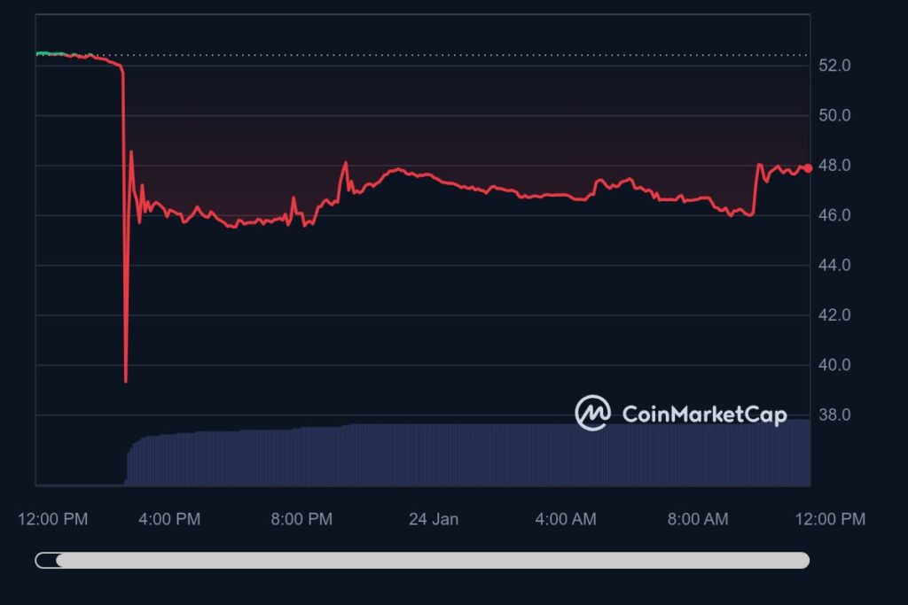 However, the coin quickly recovered to $48 and has been stable at that level ever since.