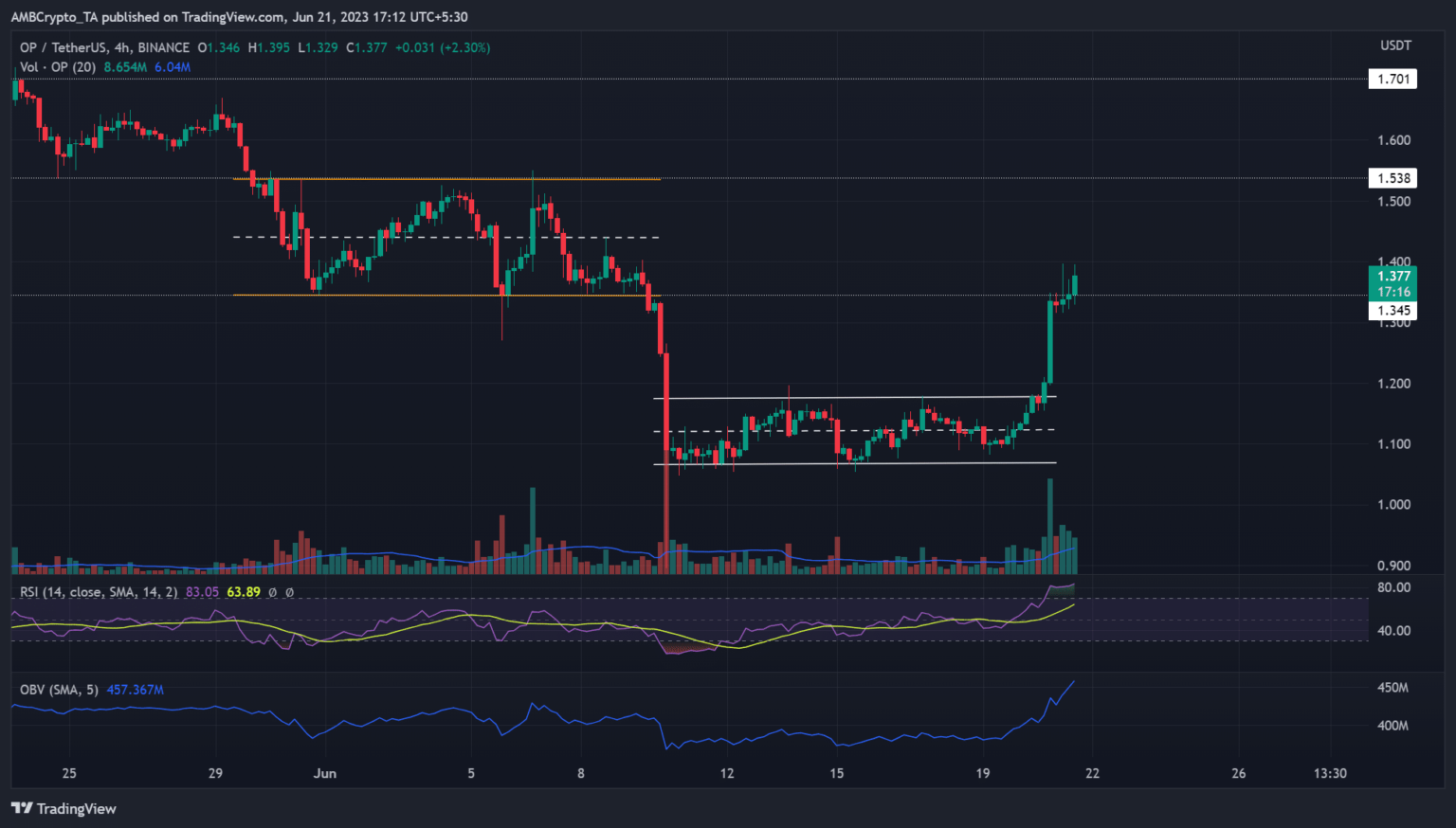 Optimism [OP] is poised to reverse all early June losses if the press trail continues. The native token from the Layer 2 roll-up is up more than 20% in the past 24 hours, from $1.12 to $1.4.