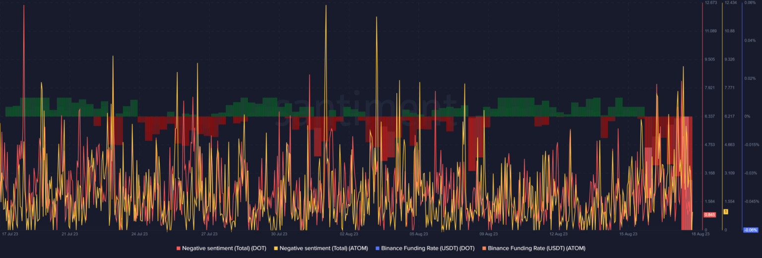 - ATOM and DOT were witnessing a price correction at the time of writing.
