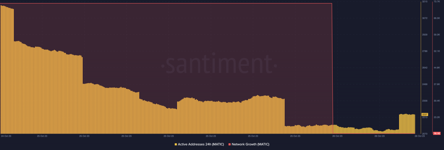 But it was a contrasting case for the Active Addresses 24 hours. At the time of writing, MATIC’s active addresses had grown to 2237. Daily active addresses show the number of different addresses speculating around a token.
