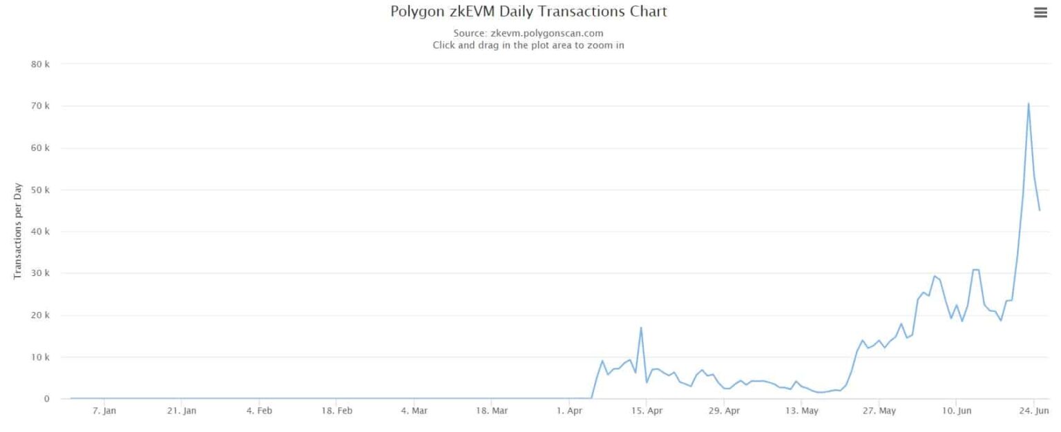 Days after marking a new all-time high, zkEVM quickly broke his own record. Daily transactions reached a new ATH of over 70,000 on June 13, 2023.