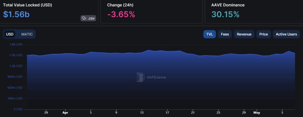 - Polygon’s TVL fell more than 3% in the past 24 hours.
