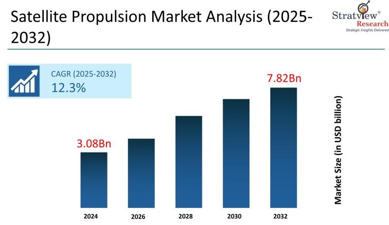 The satellite propulsion market is expected to reach $7.82 billion by 2032, with a CAGR of 12.3% between 2025 and 2032.