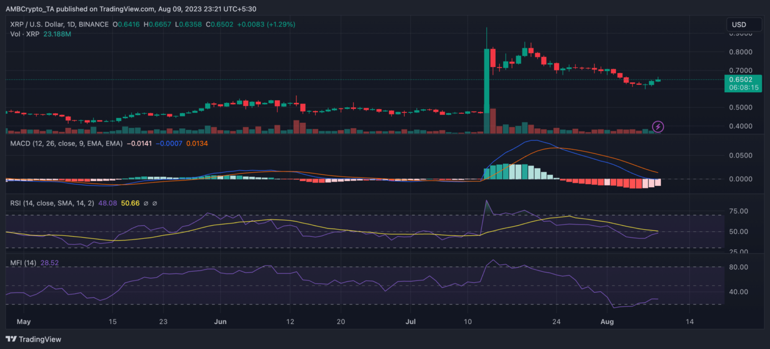 Although XRP was trading 1.29% higher than its opening price on August 9, the indicators were not exactly aligned. At the time of writing, the Moving Average Convergence Divergence (MACD) indicated that the bearish crossover was in full swing. Furthermore, the MACD indicator was all set to take a trip to the other side of the neutral line.