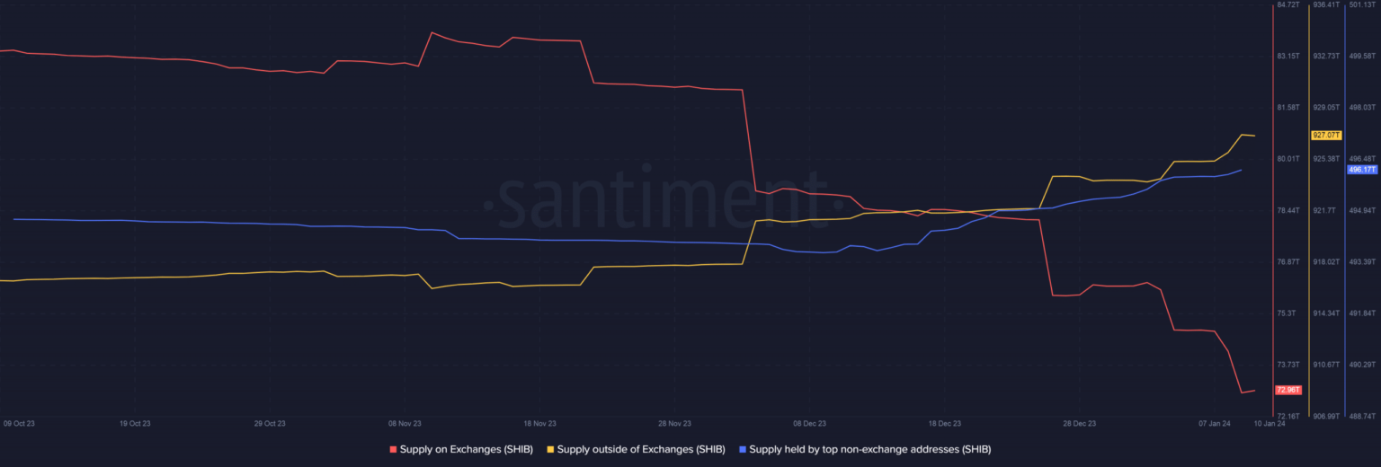 In addition, the supply outside the stock exchanges increased during this time. This reinforced SHIB’s HODLing and accumulation narrative.