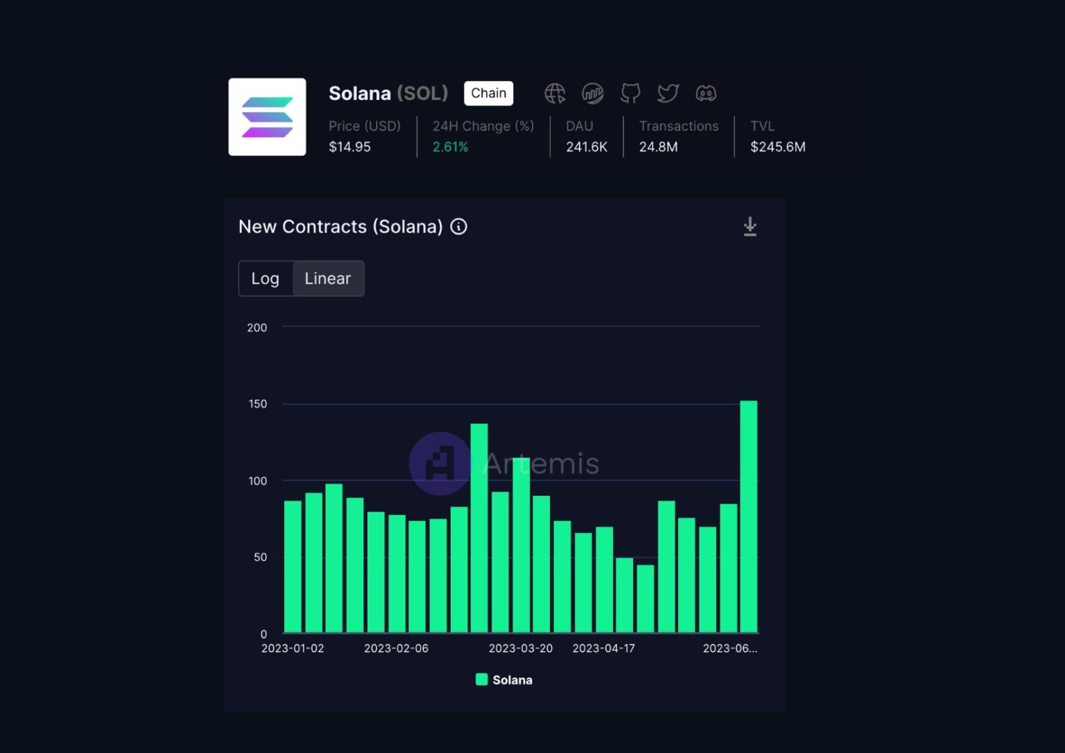 According to the latest data from Artemis, new contracts rolled out to Solana have reached an all-time high since the beginning of the year.