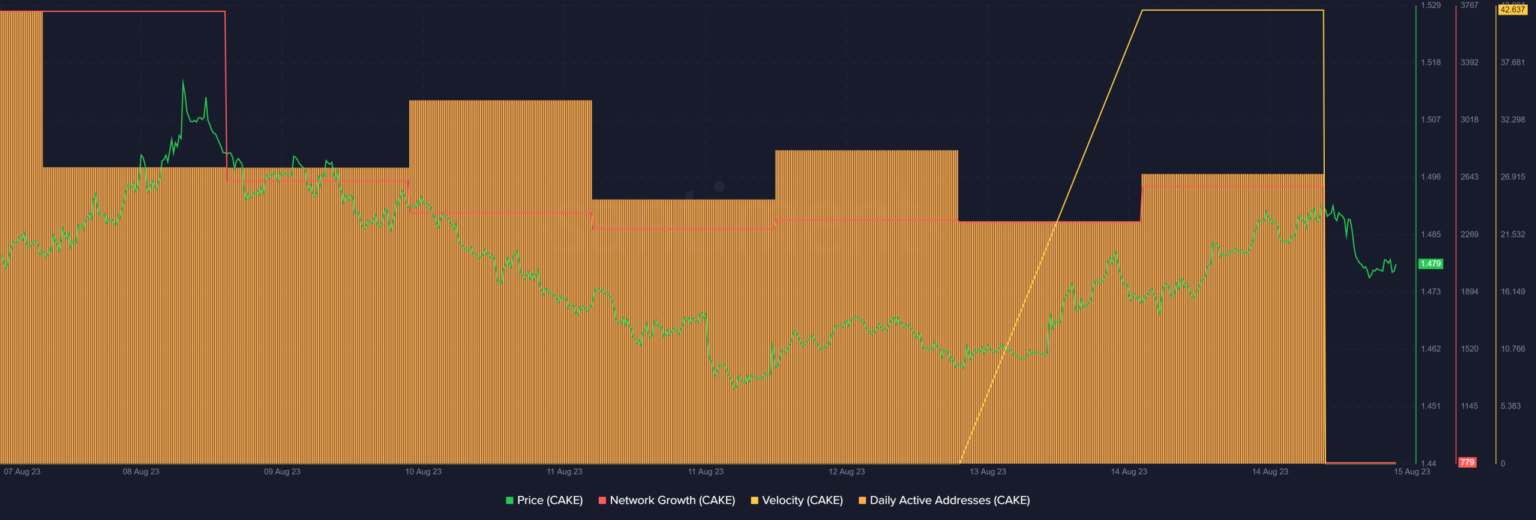 - CAKE’s price chart remained red and stats suggested a decline in network activity.