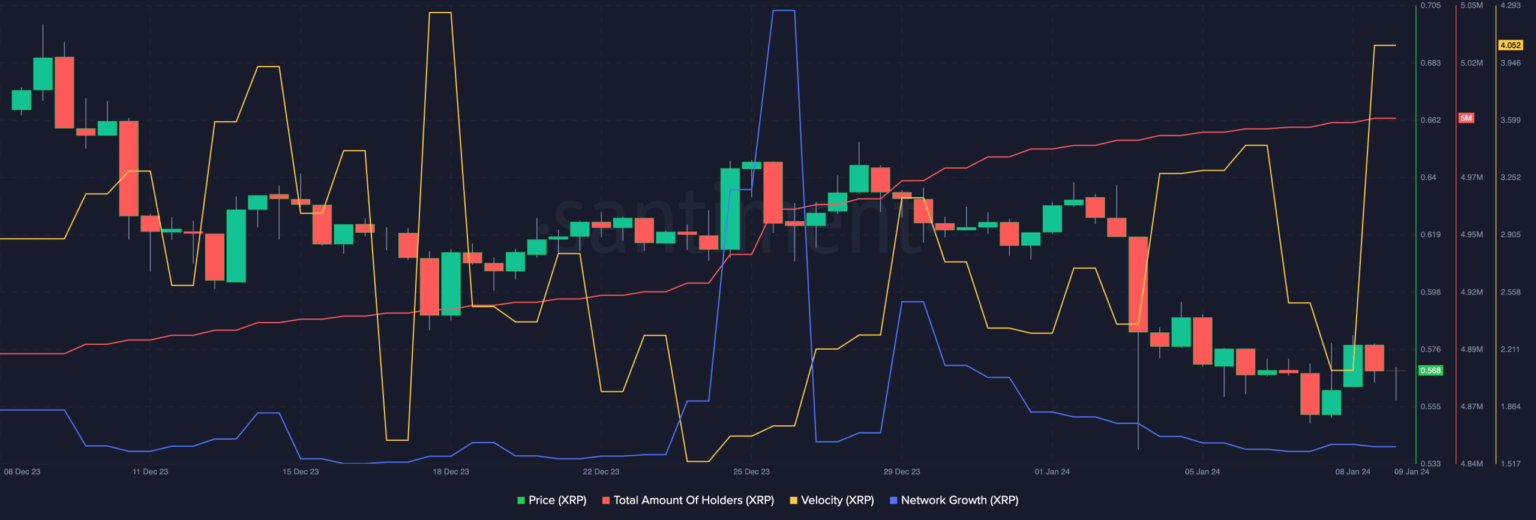 • Despite challenges, growing XRP holders and increased token velocity offered positive signals.