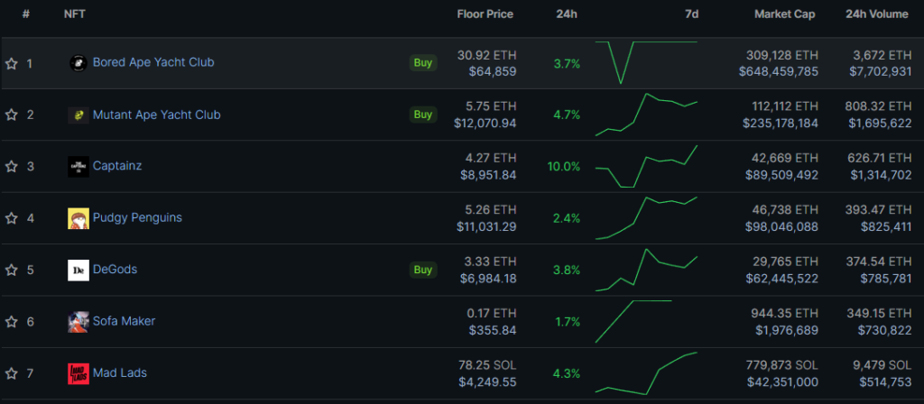In terms of sales volume, CryptoPunks led the way with a 373% increase in weekly sales. BAYC also recorded a 42% increase in sales.