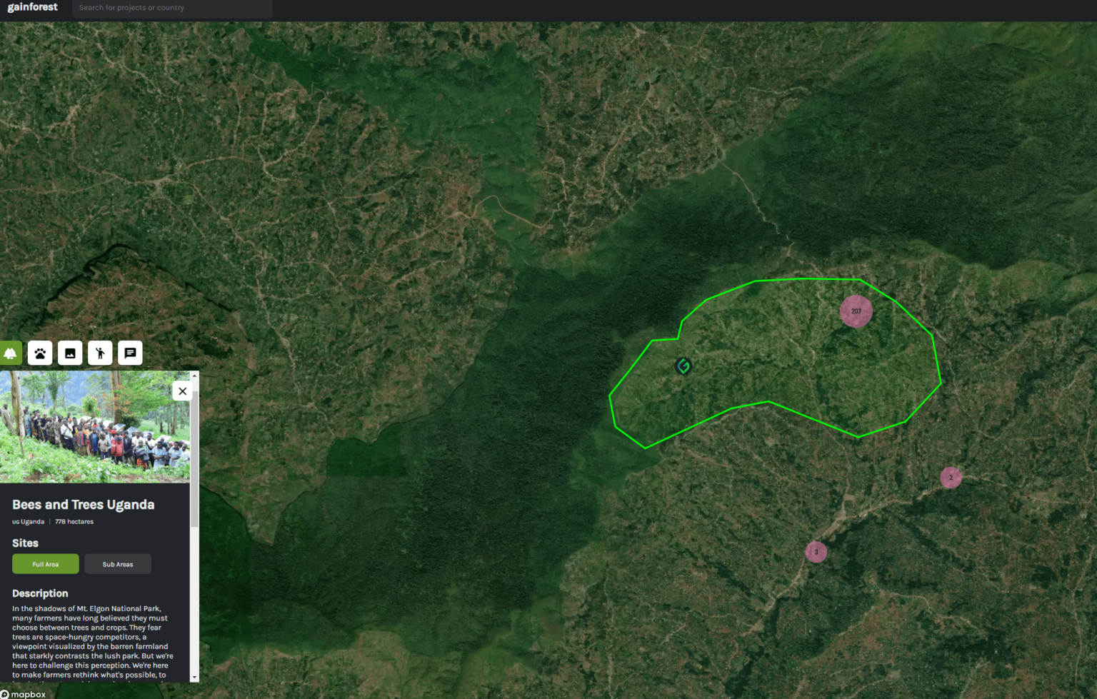 Satellite images supplemented with field data collected by community members in Uganda give investors and donors a transparent picture of ecological initiatives. Source: GainForest.