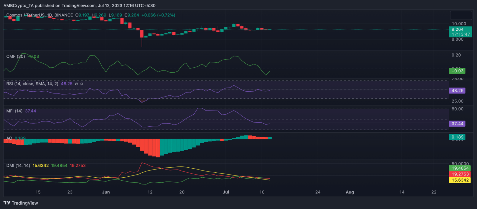 At the time of writing, the Negative Directional Index (red) of the Directional Movement Index indicator rested above the Positive Directional Index (green), confirming that ATOM sellers had control over the market.