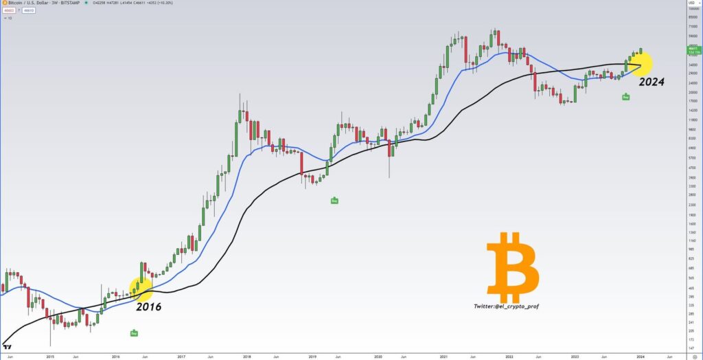 The last time this bull cross occurred, it marked the start of an 18-month run that saw Bitcoin rise 40x, from ~$500 to ~$20,000.