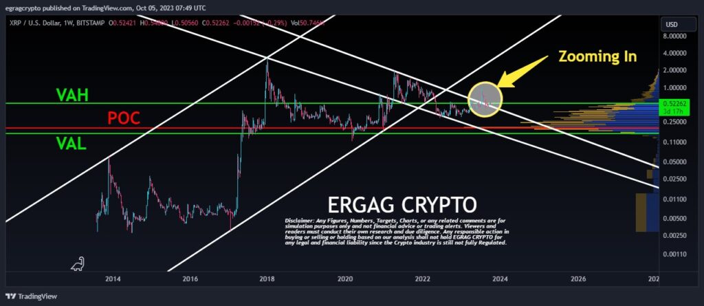 Egrag’s data suggests a VAL for XRP of around $0.16, a point of control (POC) of around $0.20226, and the crucial VAH of $0.55. On the potential of the could push price to rocket-like levels.”