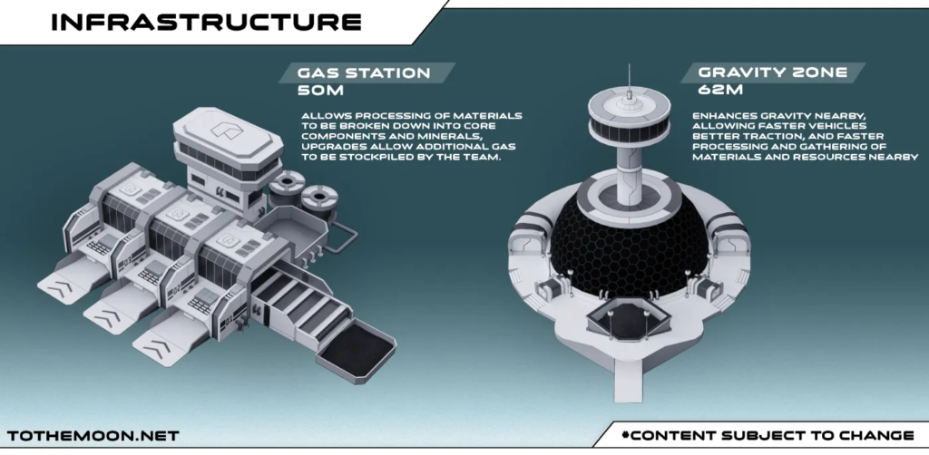 To obtain lunar infrastructure, users must obtain and burn Infrastructure Deed NFTs. These NFTs are awarded to users who stake their TTM tokens for at least 30 consecutive days.