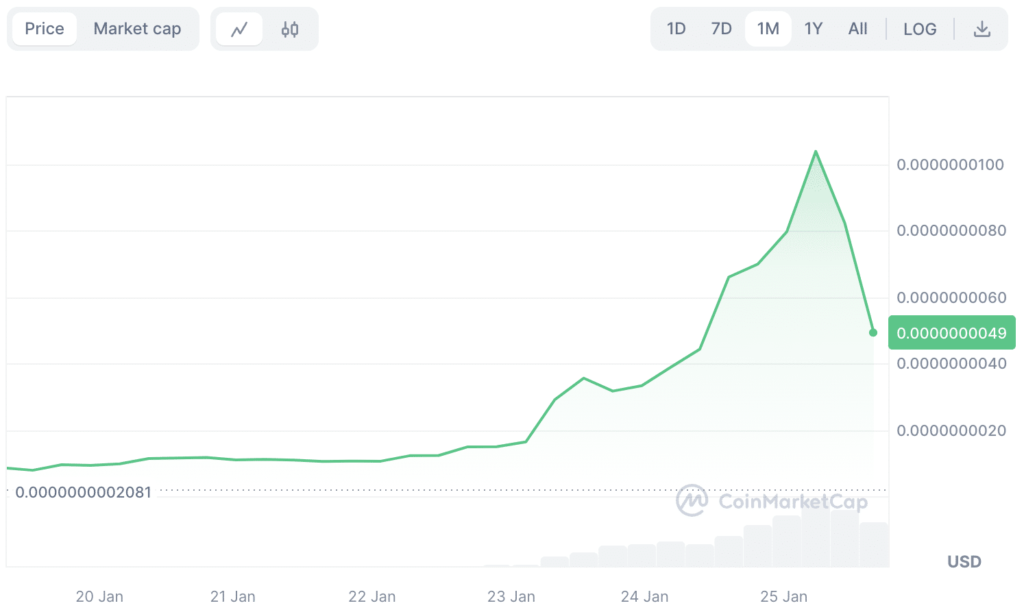 As for the BIDEN2024 token, it grew 694.25% last week and saw a massive 1796.25% increase in volume. At the time of writing, it was trading at $0.00000000431 and volume was $2.41 million.