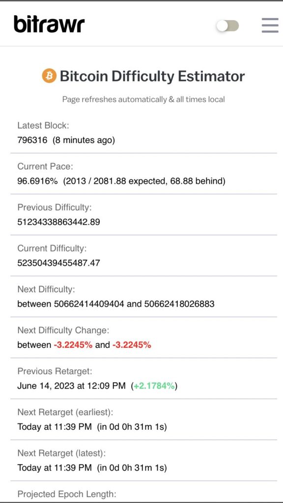 However, recent observations have revealed a significant drop in Bitcoin’s hashrate over the past 24 hours, with a notable drop of 3.2%. A lower hash rate indicates that less computing power is required to validate transactions and add them to the Bitcoin blockchain.