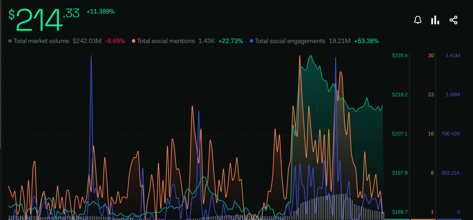 In a significant uptick, Bitcoin Cash price surged from its recent low of $180 just two weeks ago to a healthier $214, as shown by data from Santiment. This positive momentum marked a turnaround for BCH.