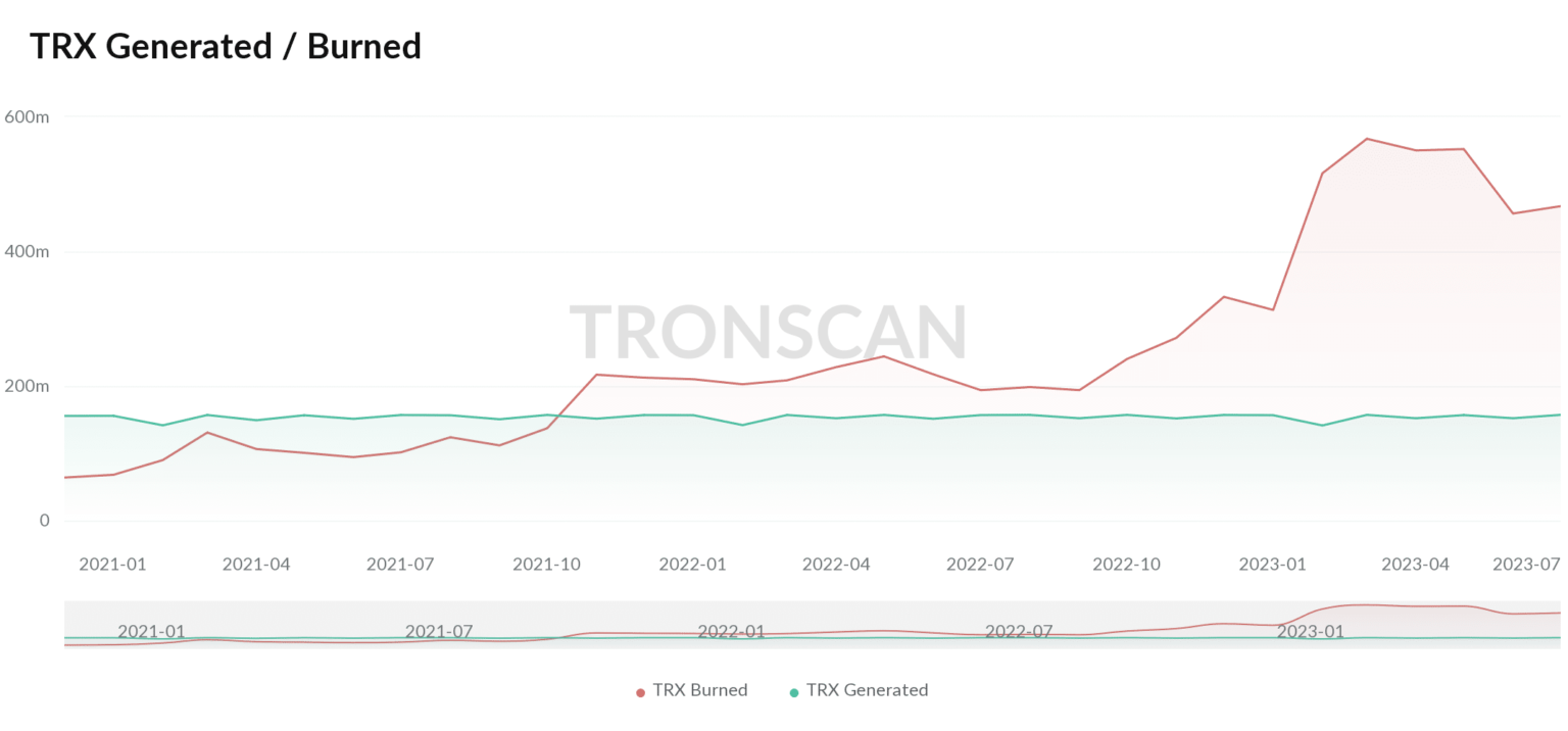 Intent on growing market value over the long term, TRON continued to put deflationary pressure on its native token TRX. The network withdrew 467 million tokens from circulation in the month of July, according to Tronscan, a 2.4% increase from June figures. This performance also marked a reversal from June’s 17% drop in burn rate.