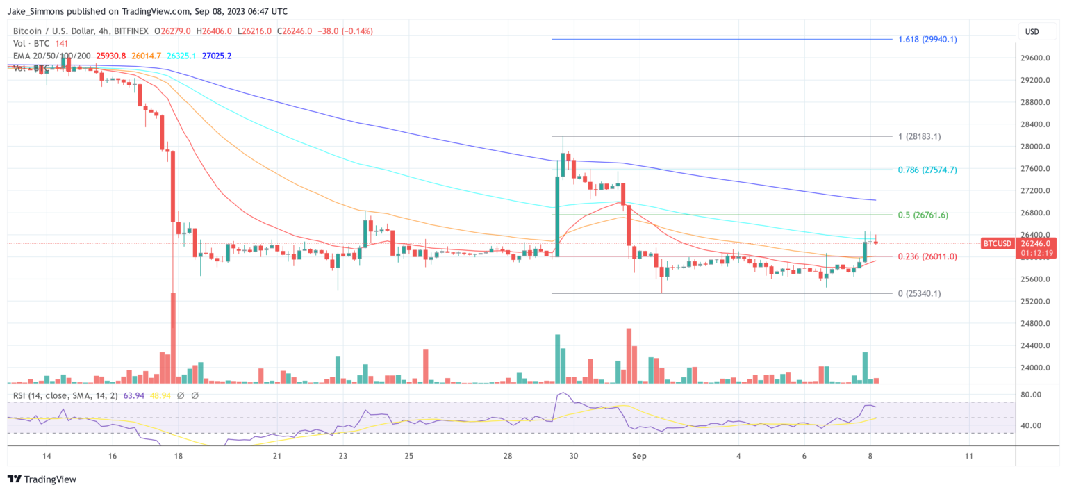 At the time of writing, BTC surged to $26,246, up 1.8% over the past 24 hours.