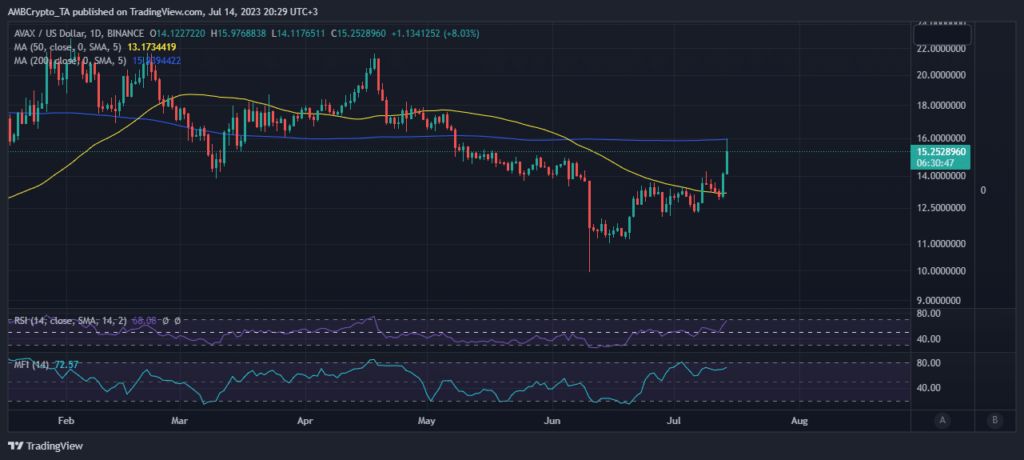 Thursday, July 13 may have been the most bullish day of 2023 to date and many cryptocurrencies, including Avalanche [AVAX] benefited. While the bullish momentum has faded over the past 24 hours, AVAX has not.
